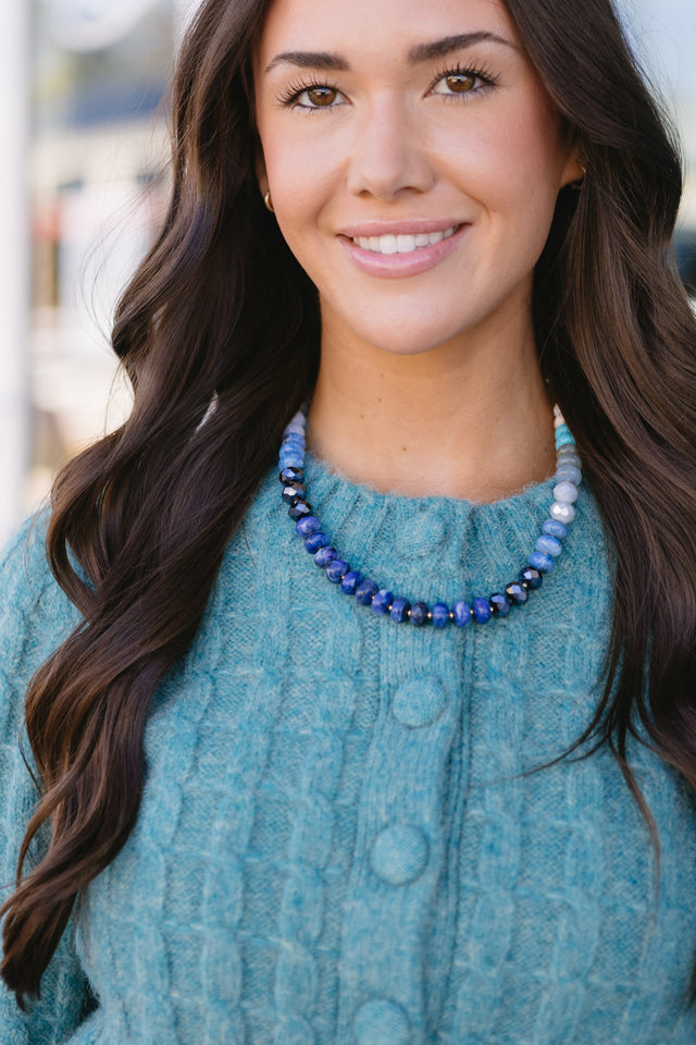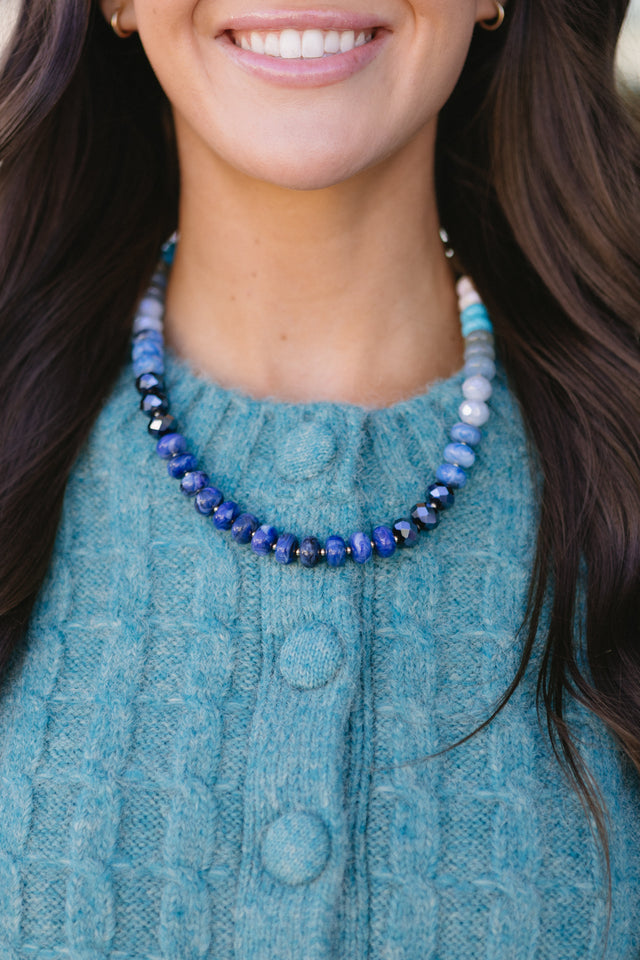 Beaded necklaceDonut shaped beadsLobster clasp with chain extenderSmall gold spacer beads throughout
