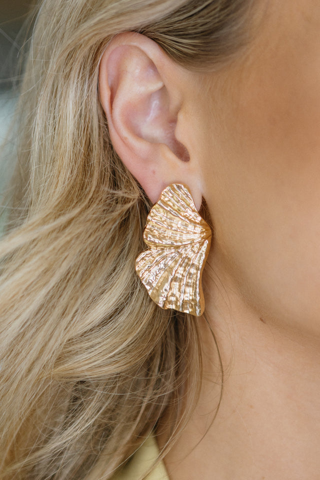 Statement earringsGold textured drapingPost backingAll earrings are considered final sale.